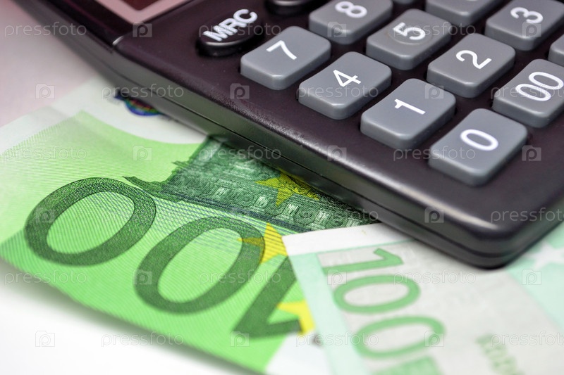 Калькулятор и банкноты евро, макро