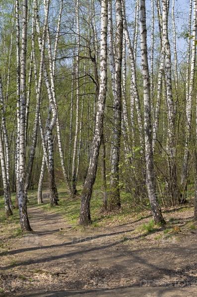 Тропинка в весеннем лесу. Теплостановский лесопарк, Москва. Солнечный день в начале мая