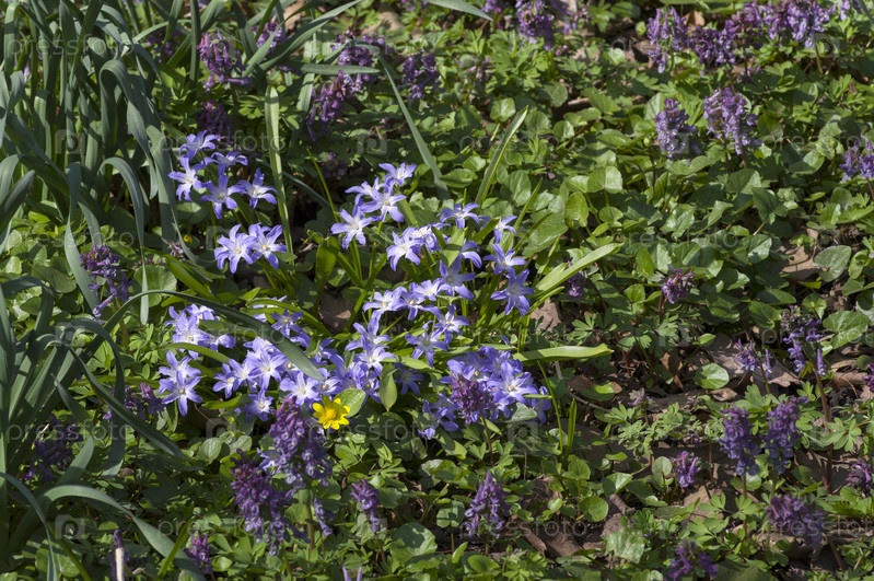 Цветящая черепаха (вид Хионодокса Люцилия, лат. Scilla luciliae).Москва, Аптекарский сад, начало апреля