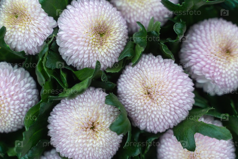 Астра амеллус кустовая. Пышные цветы. Бело-сиреневый цвет. Зеленый фон флоры