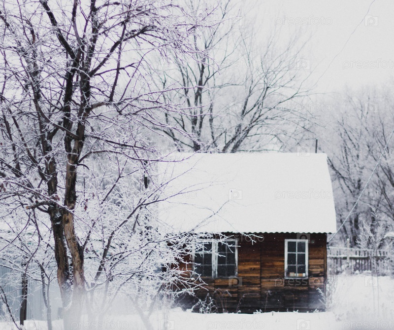 Зимний пейзаж с домиком