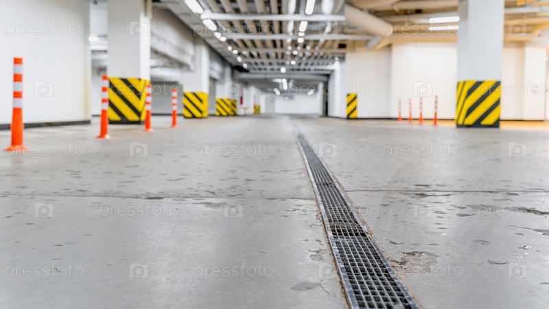 Пустая подземная автостоянка, сосредоточьтесь на размытом фоне переднего плана