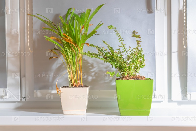 Комнатные растения в горшках на подоконнике