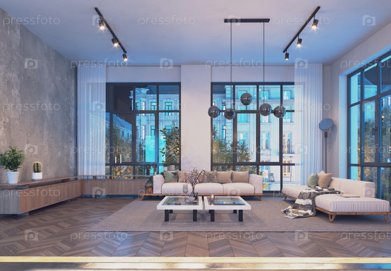 Современный дизайн интерьера гостиной Концепция 3D-рендеринга Гостиная
