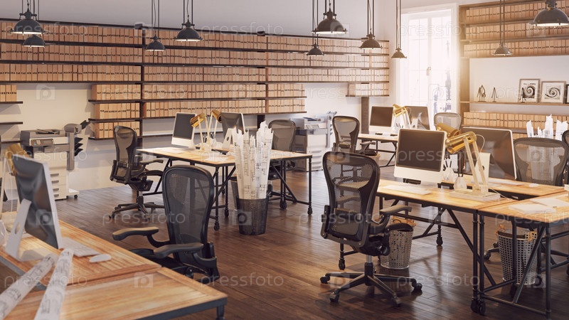 Современный дизайн интерьера офиса.Концепция 3D-иллюстрации