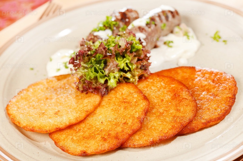 Картофельные оладьи с сосисками
