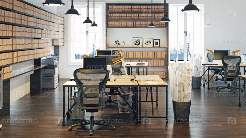 Современный дизайн интерьера офиса.Концепция 3D-иллюстрации