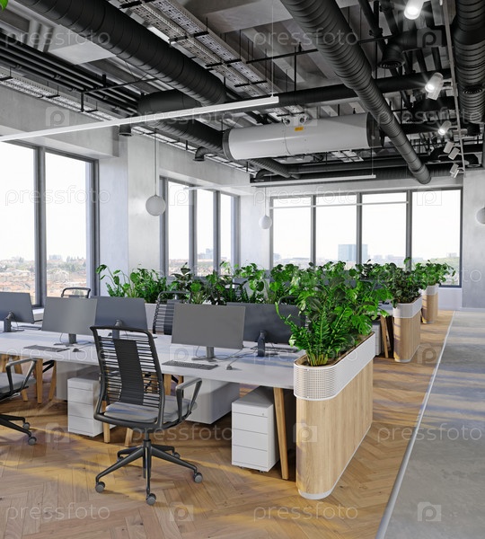 Современный офисный интерьер с растениями