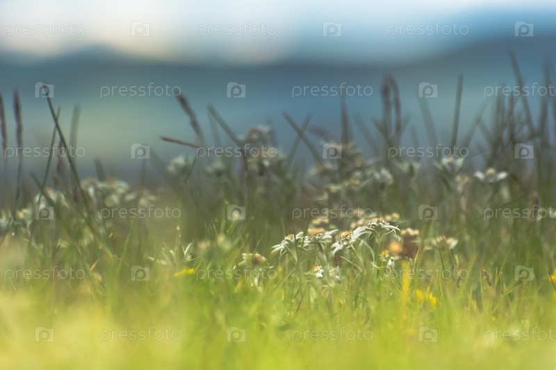 Цветы Эдельвейса на озере Сон-Куль, Кыргызстан,