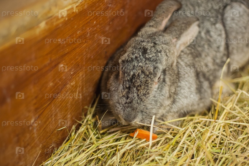 Кролик лежит на сене