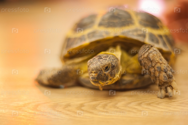 Черепаха сухопутная на деревянном фоне