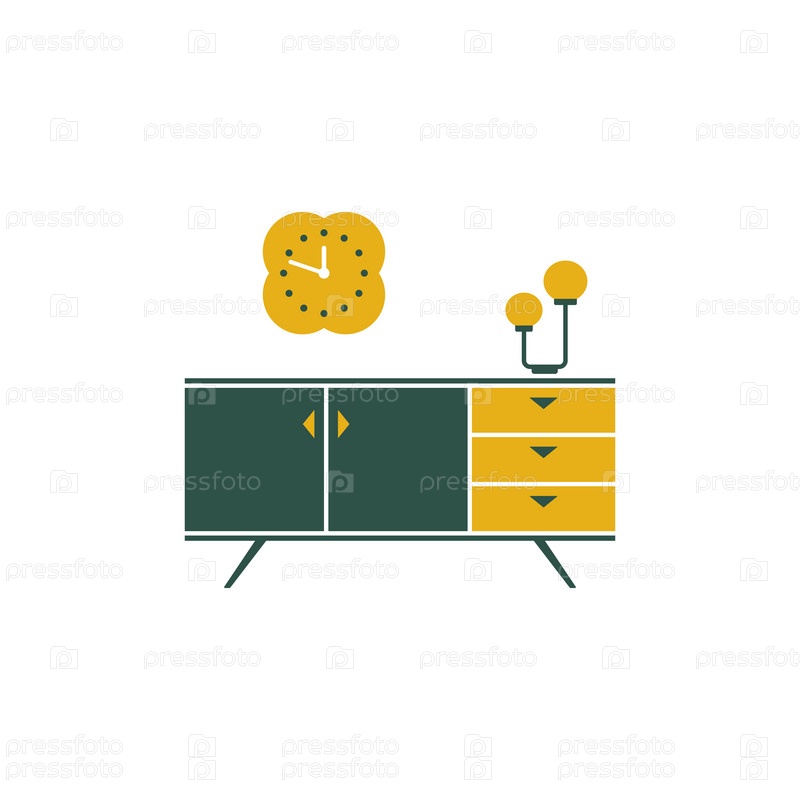 Мебельная двухцветная иконка с тумбочкой, часами и лампой