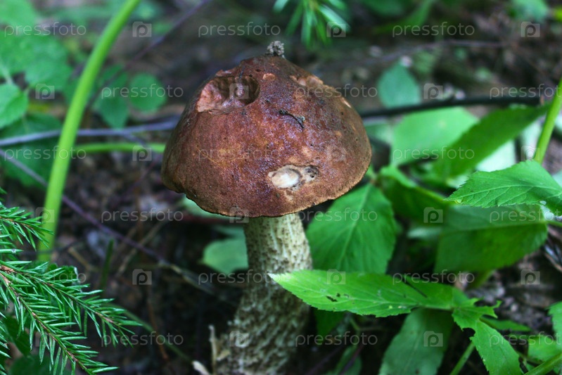 Гриб подберезовик в лесу