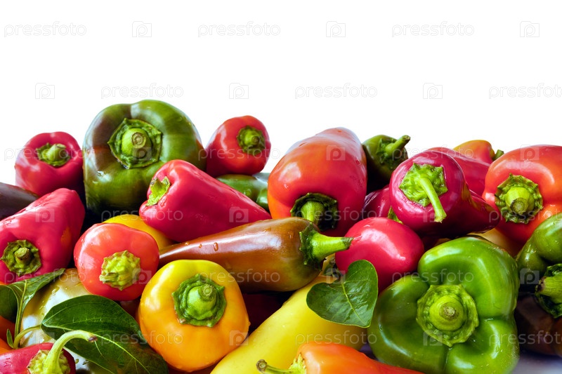 Красный, зеленый и желтый свежий болгарский перец на изолированном белом фоне