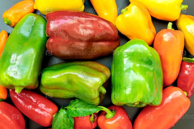 Красный, зеленый и желтый свежевымытый болгарский перец