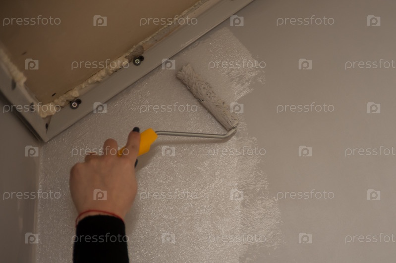 В процессе нанесения краски или продуктов на стену во время ремонта