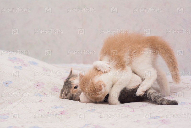 Котята разных окрасов играют друг с другом