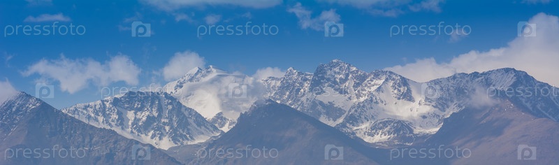 Снежные горные вершины Кыргызстана, горный ледник в Центральной Азии