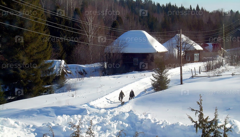 Сельские жители на деревенской улице
