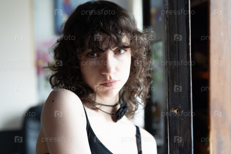 Портрет молодой красивой женщины с вьющимися волосами в студии