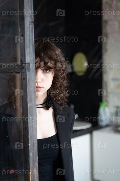 Портрет молодой красивой женщины с вьющимися волосами в студии