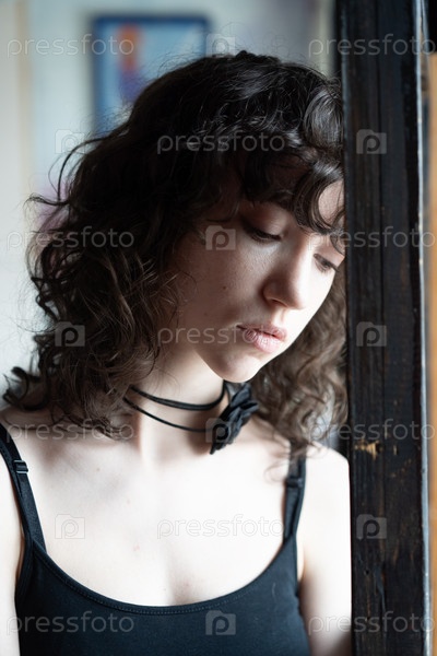 Портрет молодой красивой женщины с вьющимися волосами в студии