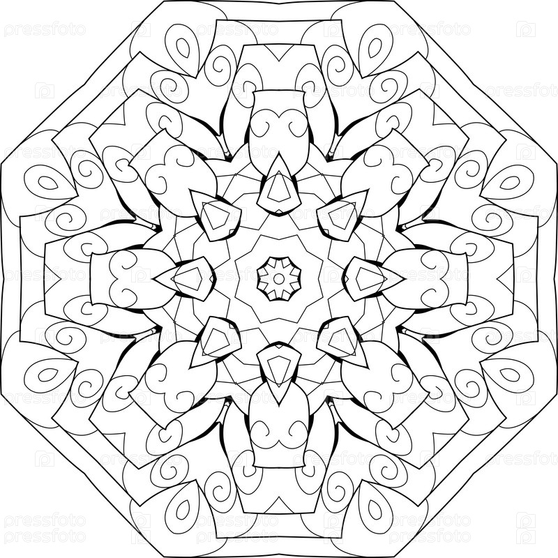 Декоративные круглые украшения. Необычная форма цветка. Восточный вектор, модели антистрессовой терапии. Сплетите элементы дизайна для раскрашивания