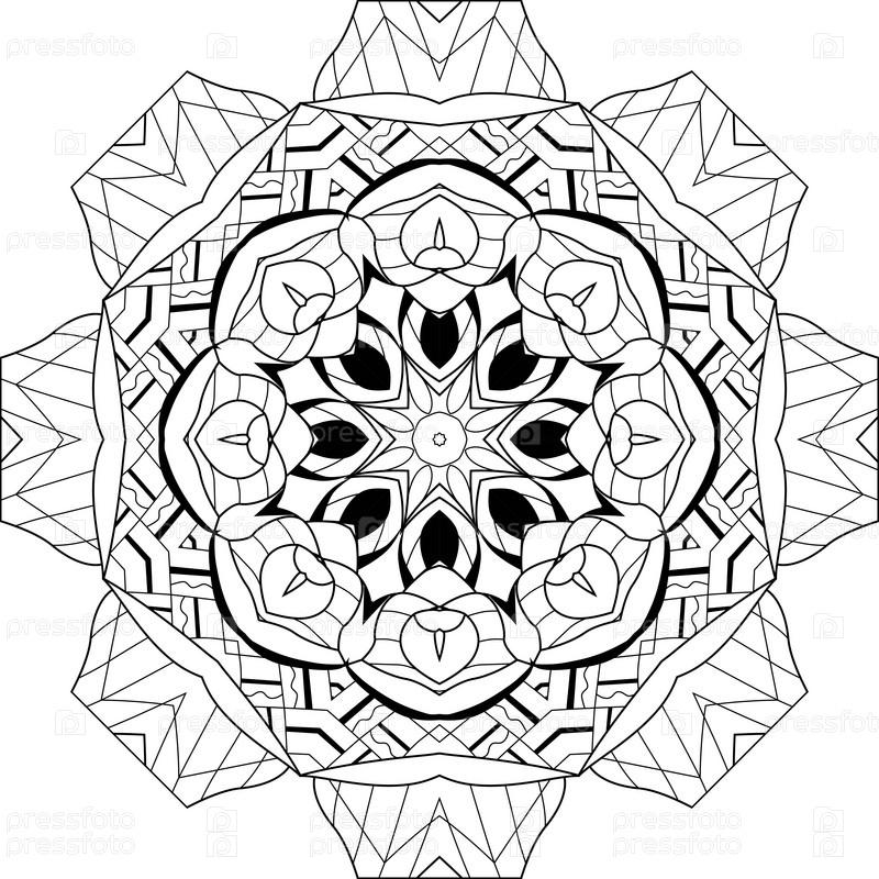 Декоративные круглые украшения. Необычная форма цветка. Восточный вектор, модели антистрессовой терапии. Сплетите элементы дизайна для раскрашивания
