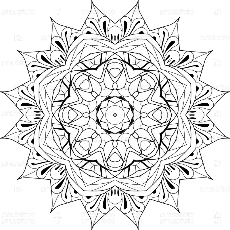 Декоративные круглые украшения. Необычная форма цветка. Восточный вектор, модели антистрессовой терапии. Сплетите элементы дизайна для раскрашивания