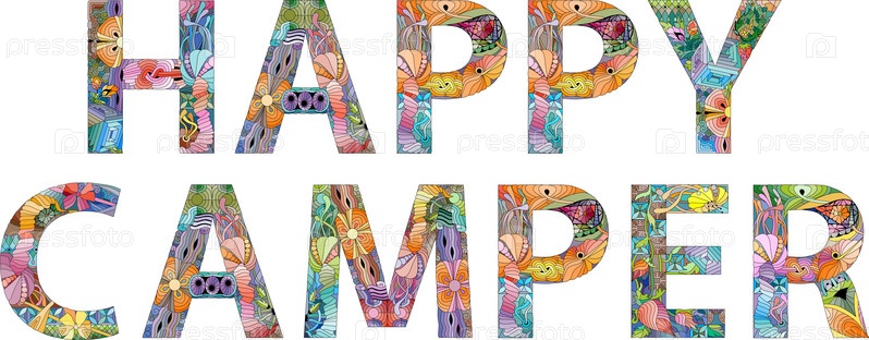 СЧАСТЛИВЫЙ ТУРИСТ. Красочное векторное слово, выделенное на белом фоне