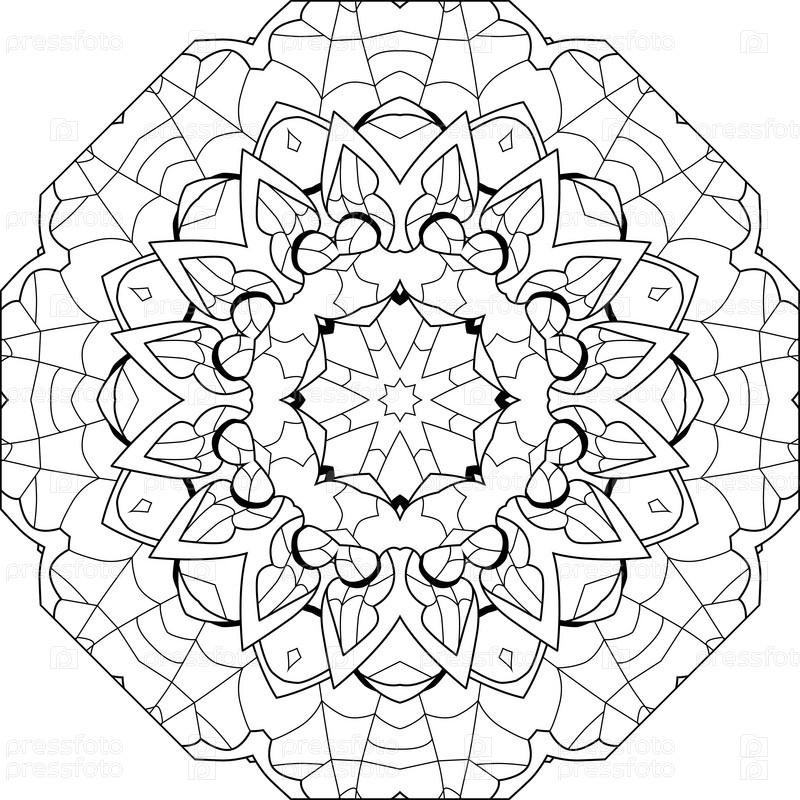 Декоративные круглые украшения. Необычная форма цветка. Восточный вектор, модели антистрессовой терапии. Сплетите элементы дизайна для раскрашивания