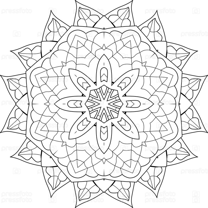 Декоративные круглые украшения. Необычная форма цветка. Восточный вектор, модели антистрессовой терапии. Сплетите элементы дизайна для раскрашивания