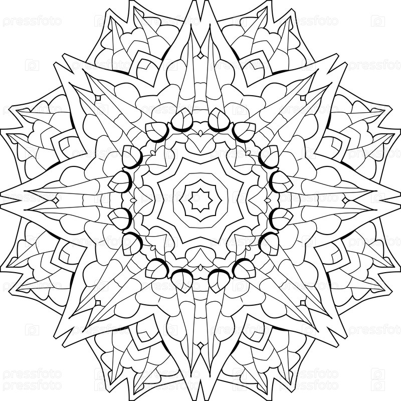 Декоративные круглые украшения. Необычная форма цветка. Восточный вектор, модели антистрессовой терапии. Сплетите элементы дизайна для раскрашивания