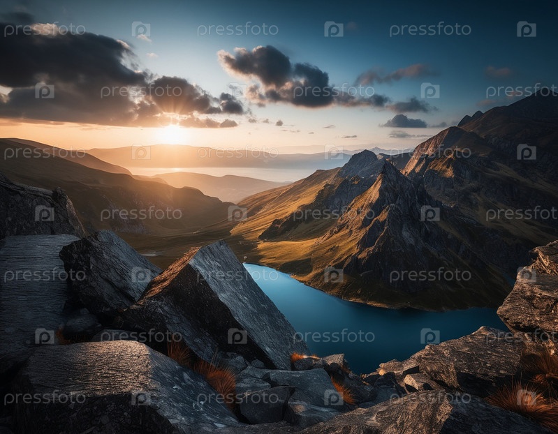 Красивый кинематографический горный пейзаж с черным мрамором и гранитом