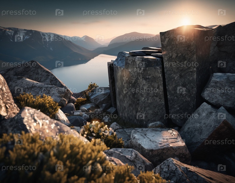 Красивый кинематографический горный пейзаж с черным мрамором и гранитом