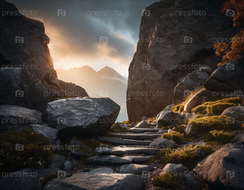 Красивый кинематографический горный пейзаж с черным мрамором и гранитом