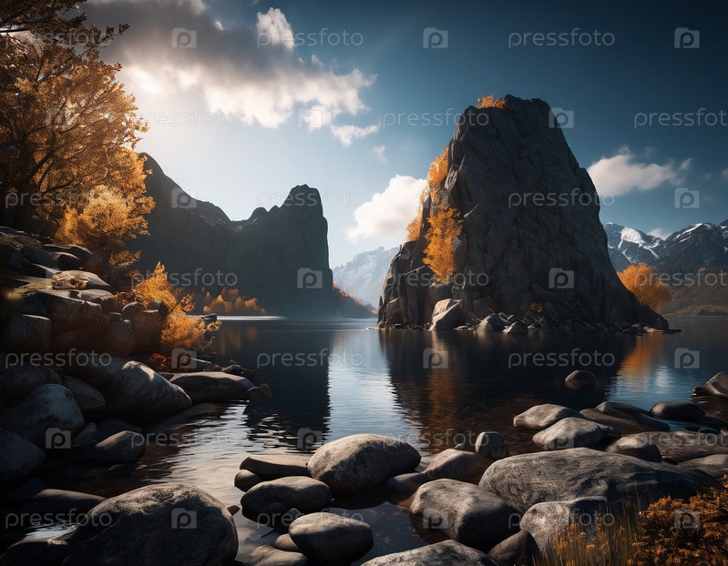 Красивый кинематографический горный пейзаж с черным мрамором и гранитом