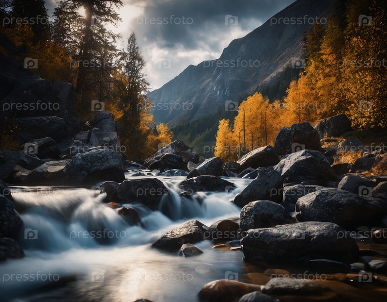 Красивый кинематографический горный пейзаж с черным мрамором и гранитом