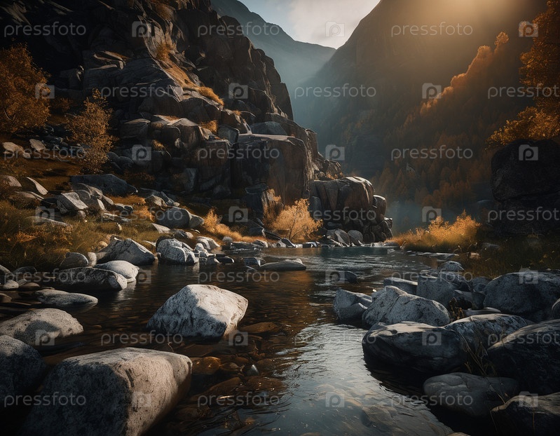 Красивый кинематографический горный пейзаж с черным мрамором и гранитом