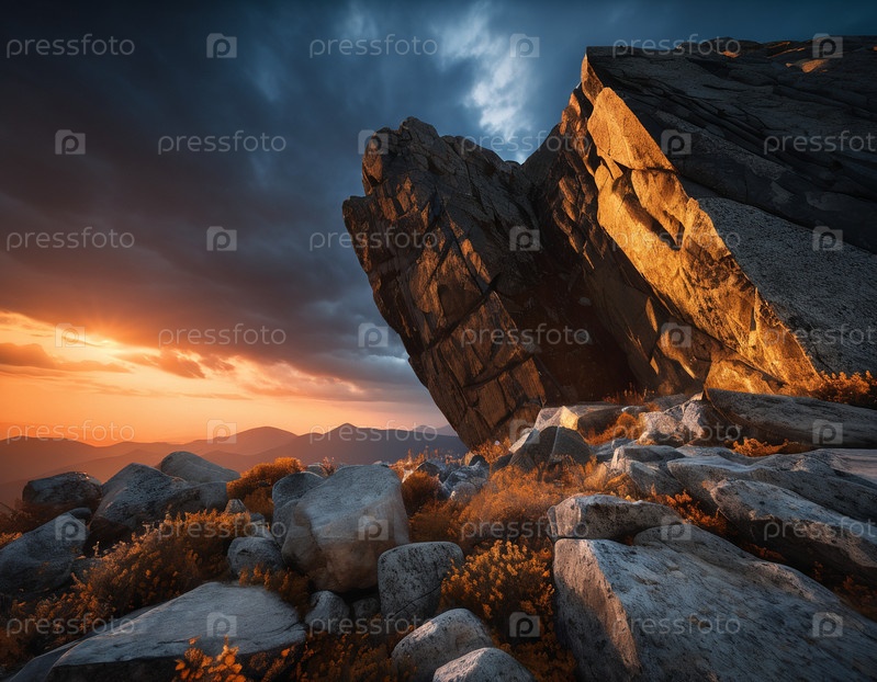 Красивый кинематографический горный пейзаж с черным мрамором и гранитом