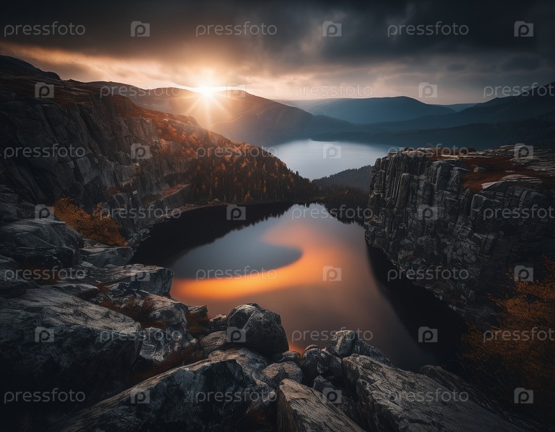 Красивый кинематографический горный пейзаж с черным мрамором и гранитом