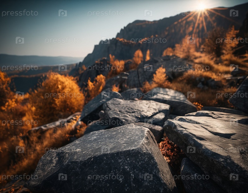Красивый кинематографический горный пейзаж с черным мрамором и гранитом