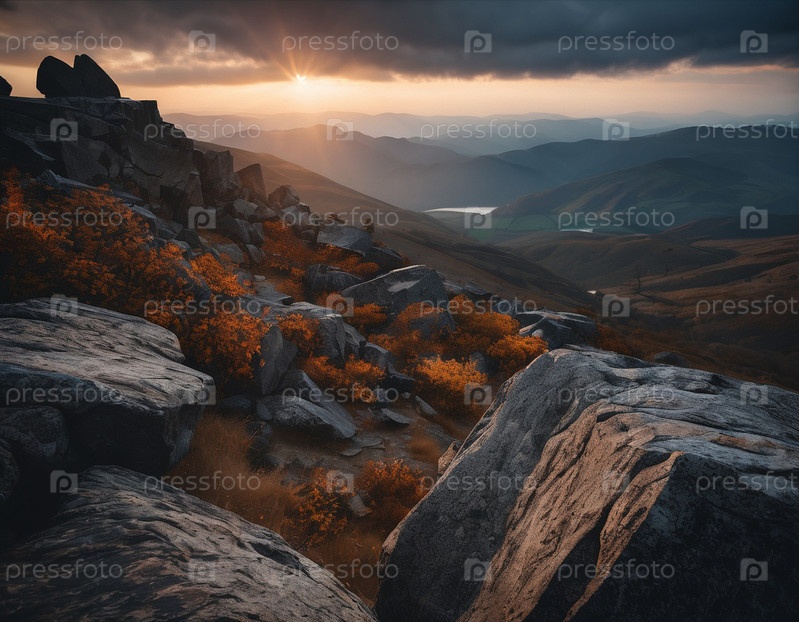 Красивый кинематографический горный пейзаж с черным мрамором и гранитом