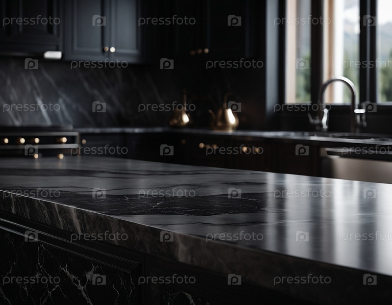 Профессиональный дизайн интерьера с использованием дорогого черного мрамора и гранита. Отличный фон для презентации и продукта