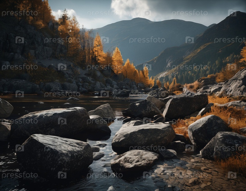 Красивый кинематографический горный пейзаж с черным мрамором и гранитом