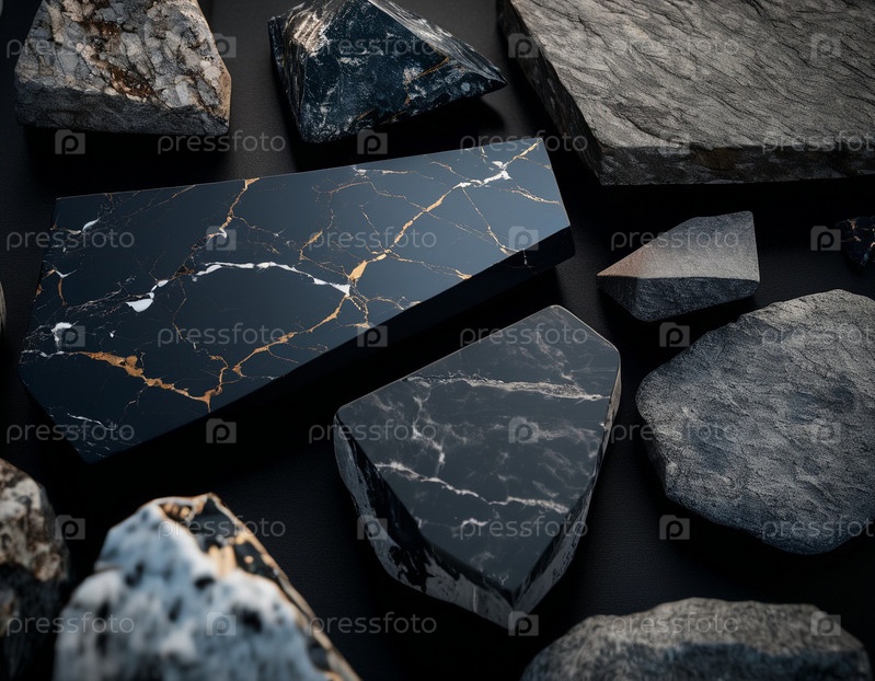 Красивый кинематографический горный пейзаж с черным мрамором и гранитом