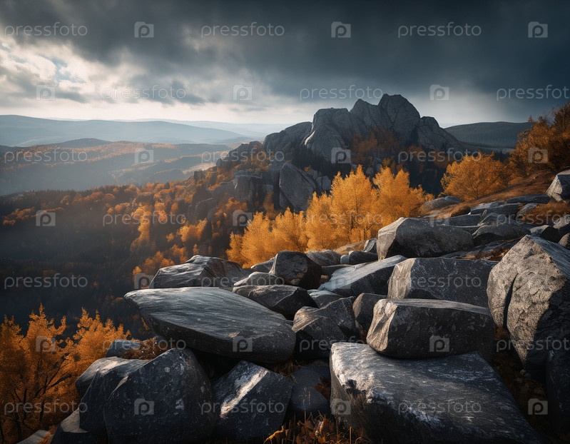 Красивый кинематографический горный пейзаж с черным мрамором и гранитом