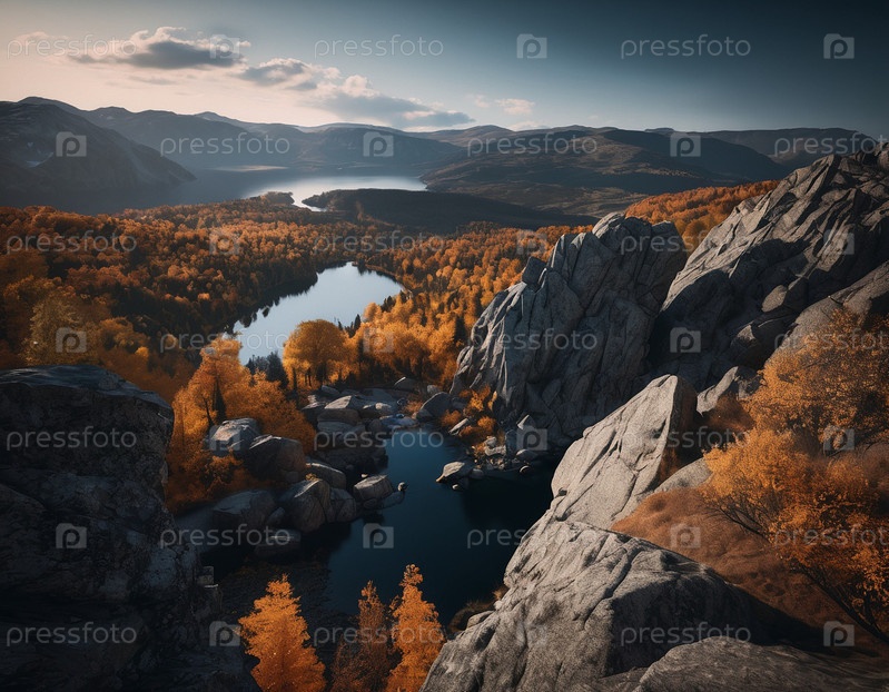 Красивый кинематографический горный пейзаж с черным мрамором и гранитом
