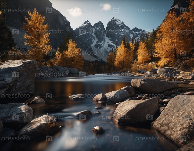 Красивый кинематографический горный пейзаж с черным мрамором и гранитом