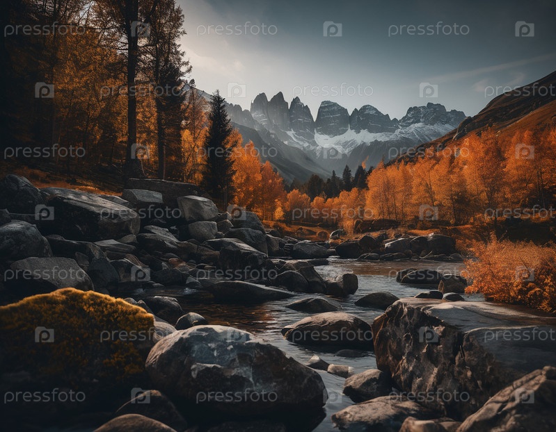Красивый кинематографический горный пейзаж с черным мрамором и гранитом
